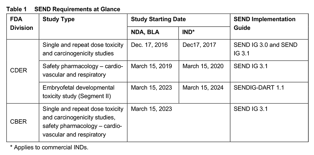 FDA’s Center for Biologics Evaluation and Research (CBER) has also announced its readiness to receive and review SEND data from March 15, 2021 onwards. Submission of SEND data will be mandatory for studies starting on or after March 15,